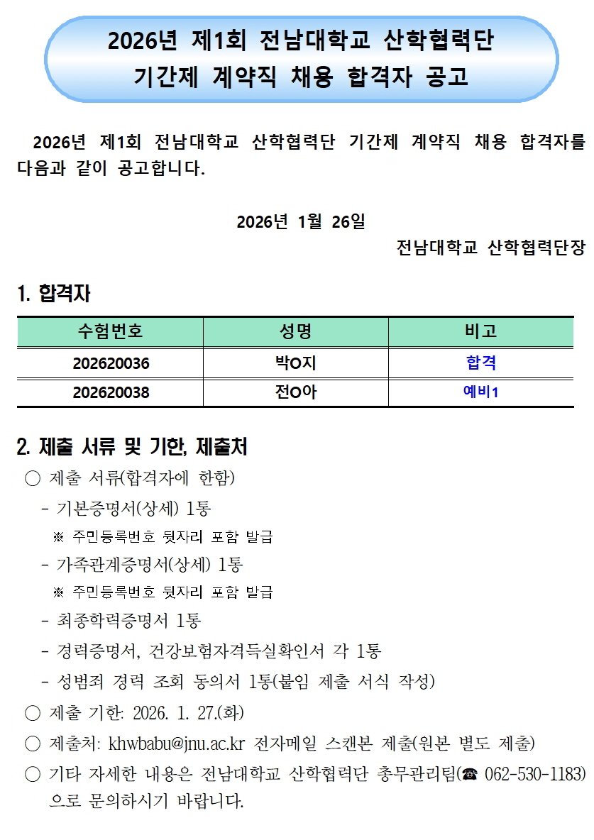 ★2026년 제1회 전남대학교 산학협력단 기간제 계약직 채용 합격자 공고.hwp