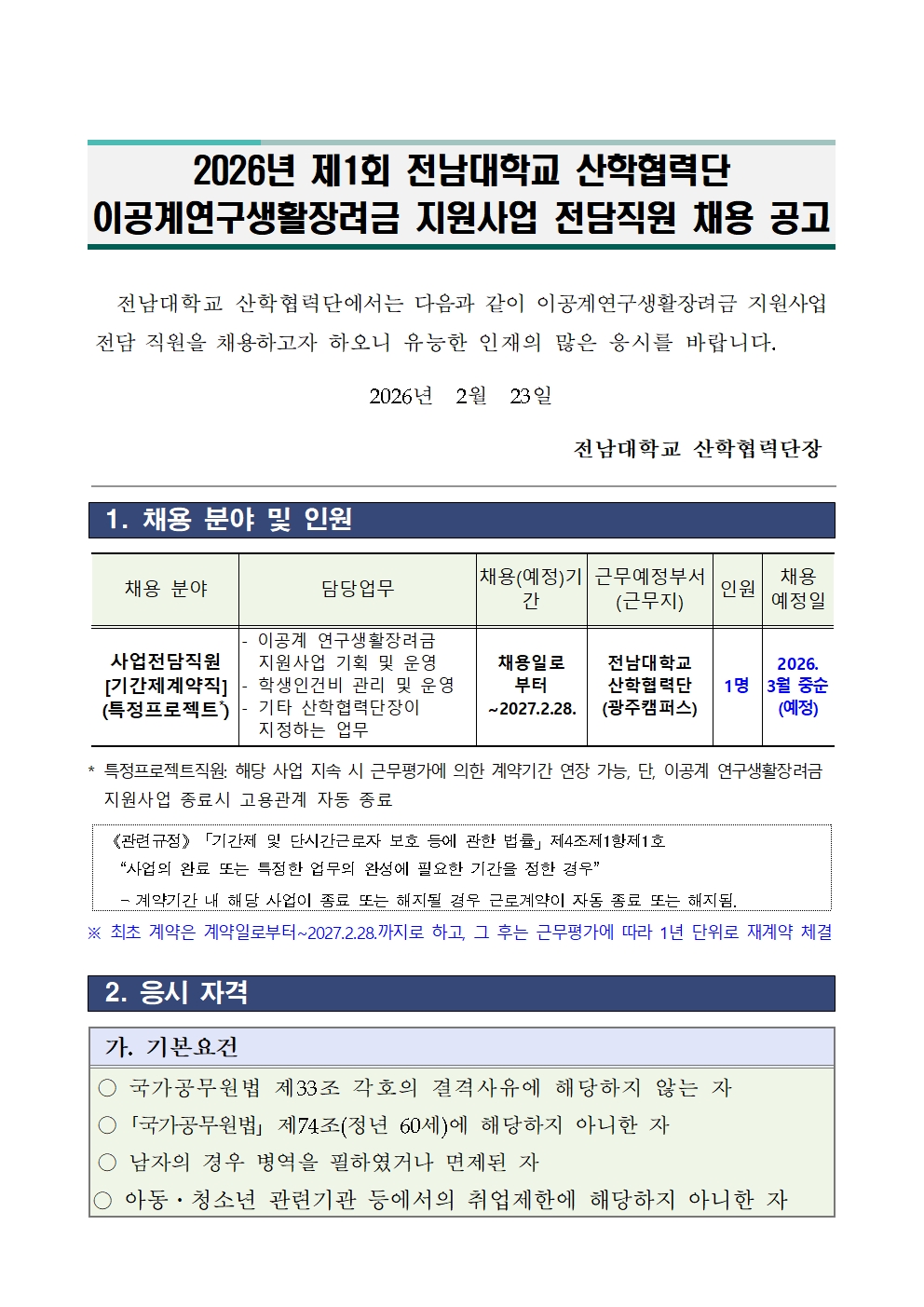 1. 2026년 제1회 전남대학교 산학협력단 이공계연구생활장려금 지원사업 전담직원 채용 공고.hwp