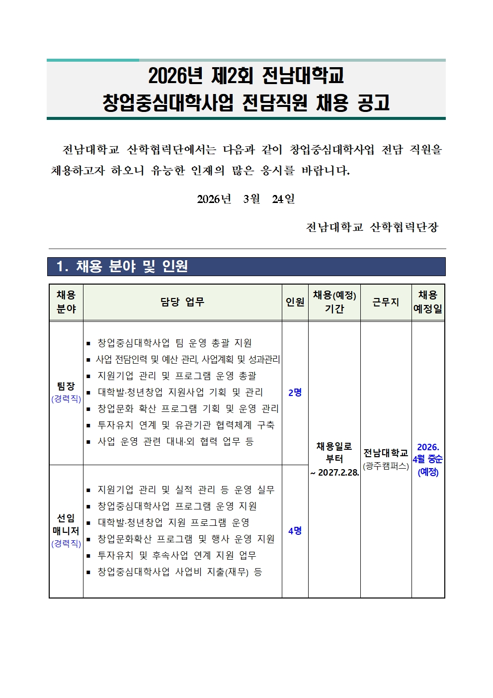 1.2026년 제2회 전남대학교 창업중심대학사업 전담직원 채용 공고.hwp
